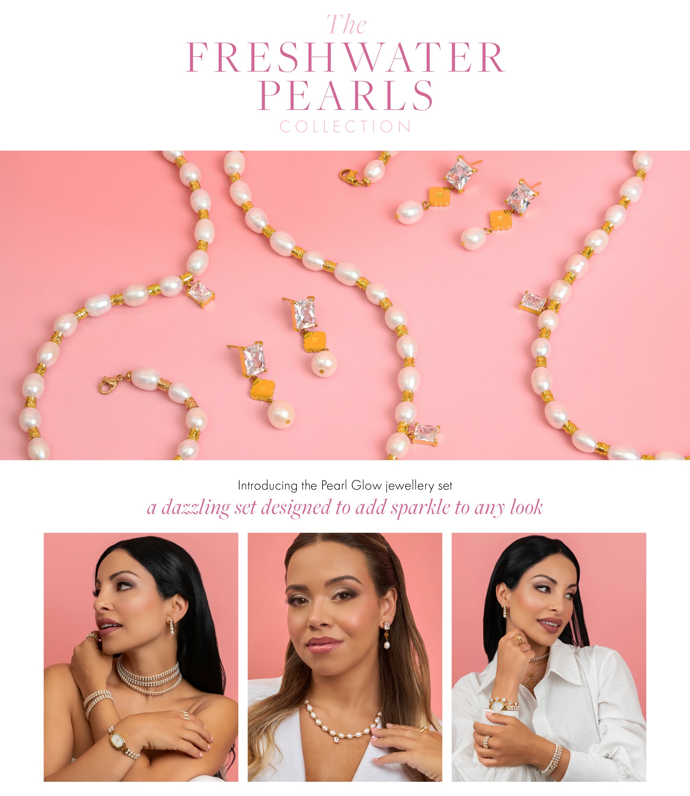 Qabru FreshWater Pearl Drop Stud Earrings & Qabru Multi Charm Necklace Gift SetQabru FreshWater Pearl Drop Stud Earrings & Qabru Multi Charm Necklace Gift Set- Regular price