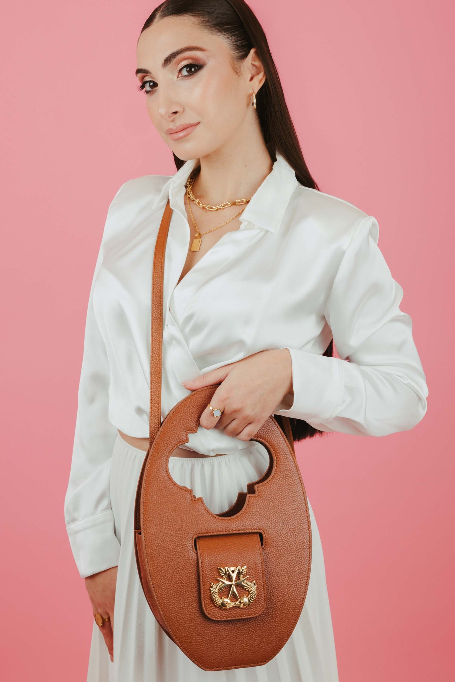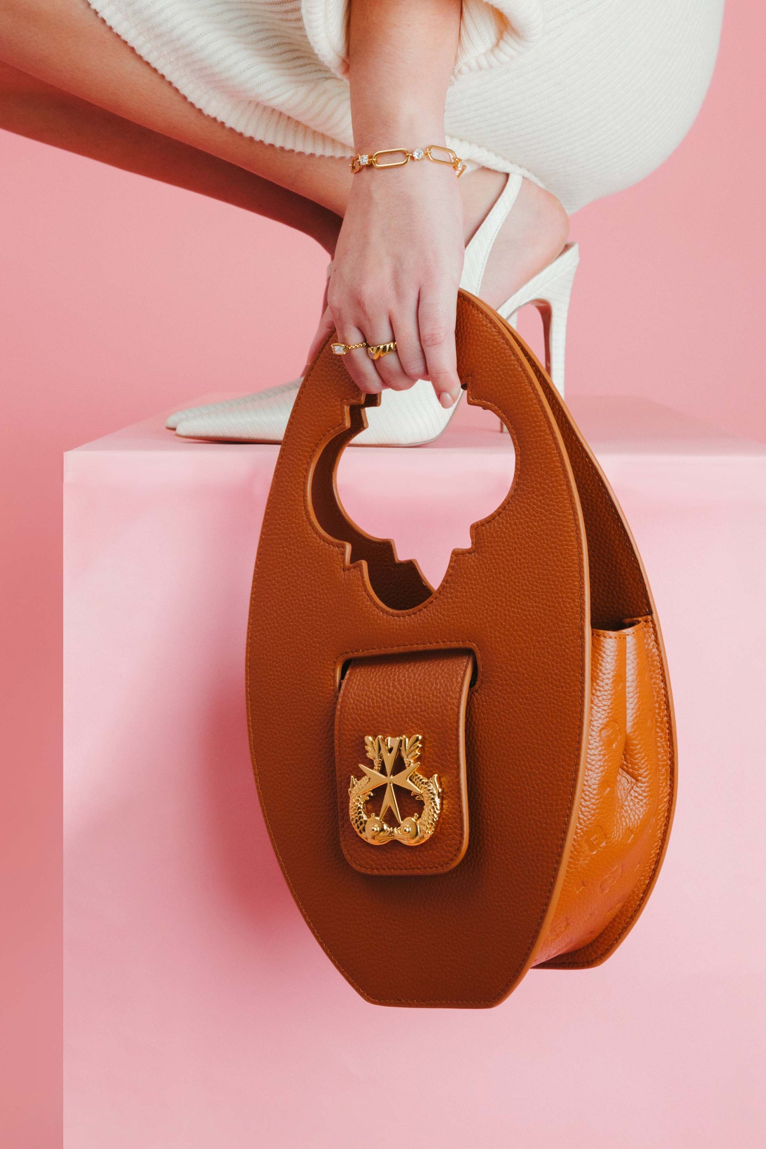 Tereża's Round Leather Tan Bag