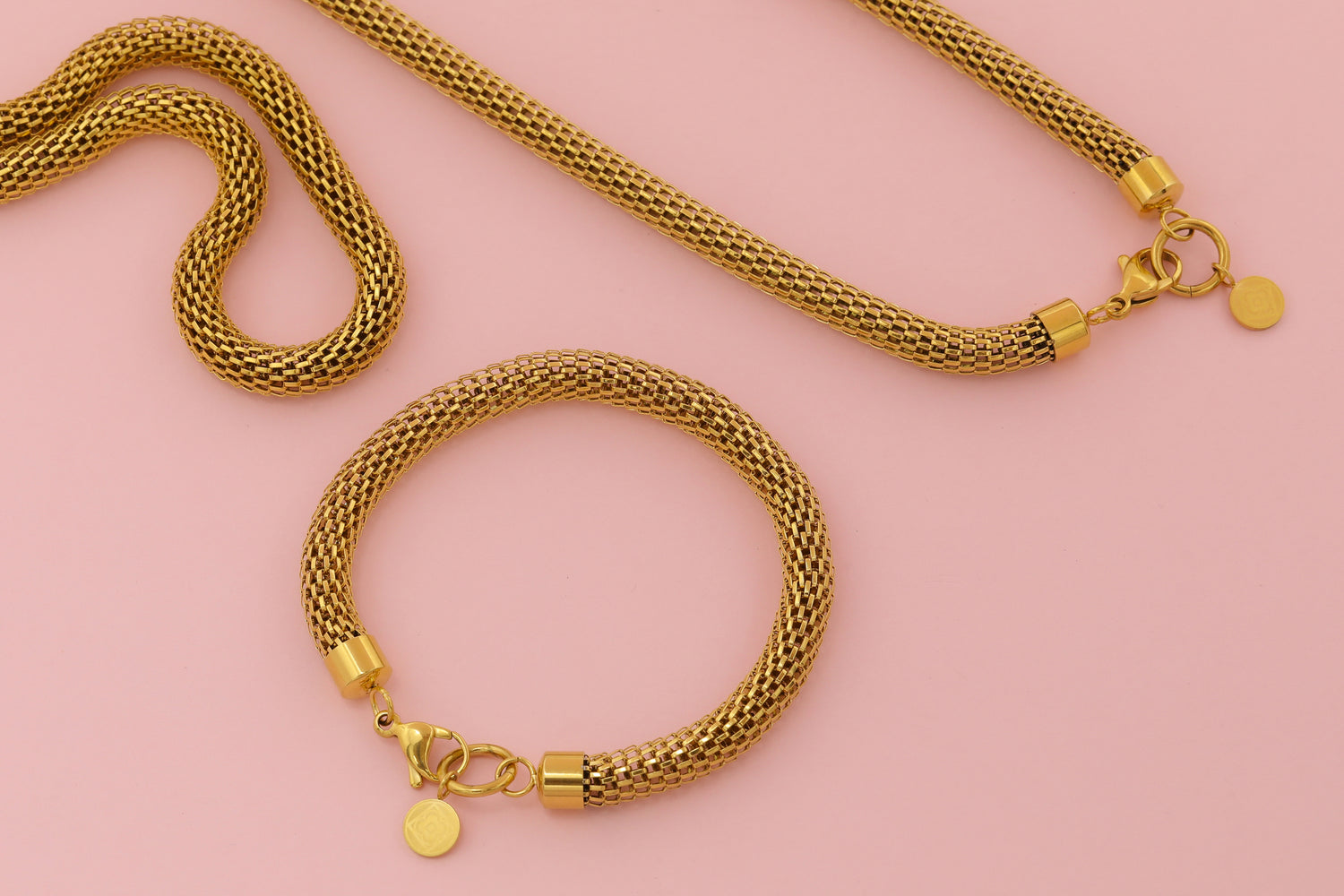 Elegant to a fault, the ‘Snake Tube Necklace’ is a forever piece that you’ll be reaching for again and again. With its gorgeous snake look of meshed gold-plated stainless steel, this design will have everyone looking at you twice. Add the 'Riflessi Letter Pendant' to it and pair it with the ‘Snake Tube Bracelet’ for the ultimate elegant set.