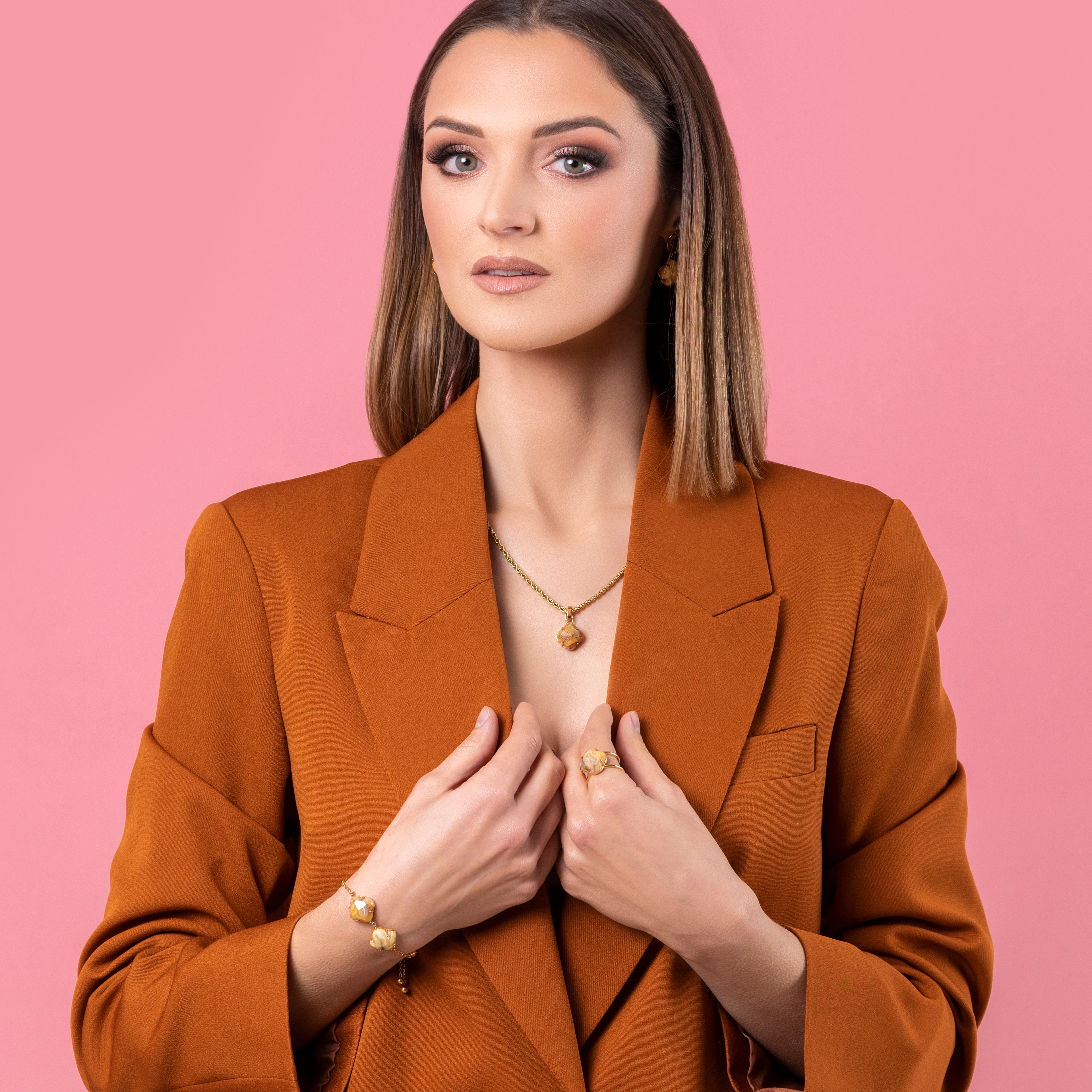 Carisma produces jewellery in 316L stainless steel. We also make use of enamel. Stainless steel is resistant and most importantly hypoallergenic(relatively unlikely to cause an allergic reaction). Each piece may differ from the website pictures due to most of the jewellery being handmade and using natural stones. We strive to provide the best quality, combining resistant stainless steel with the finest 18k gold plating on the market.