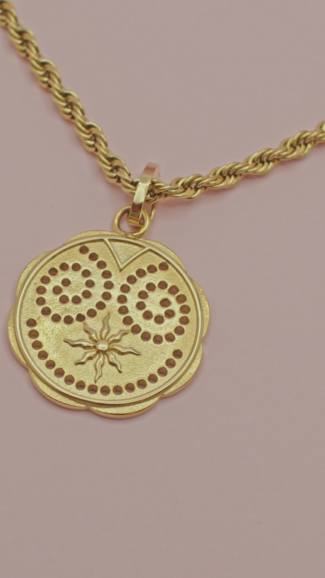 Made in gold-plated stainless steel with etchings of the sun and the decorative swirls adorning the temples, ‘The Synergy Pendant’ is a reminder to look towards the greatness of the past as an inspiration for the future. Thread it on any of our CARISMA chains and wear a piece of your heritage with pride.