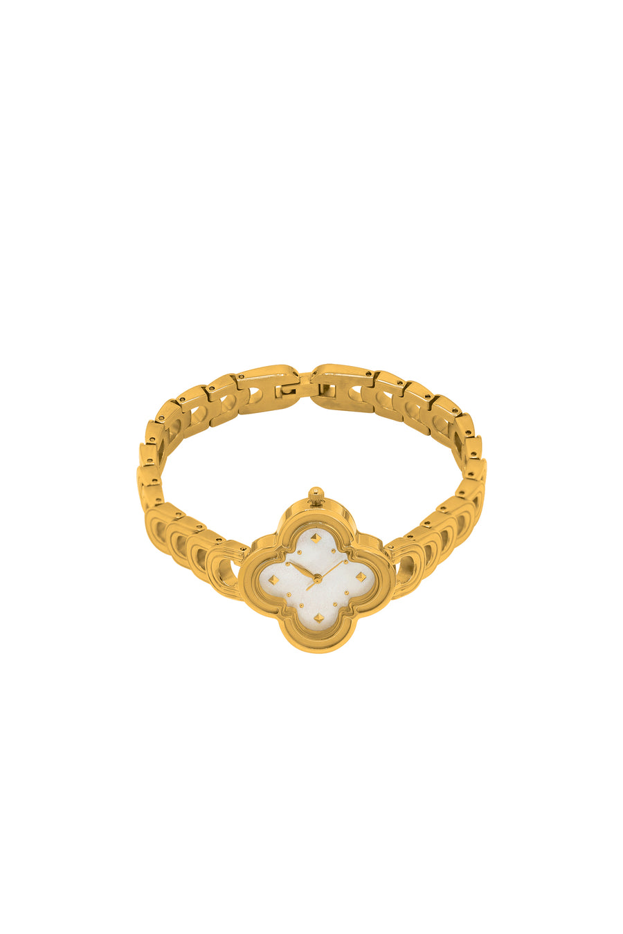316L Stainless Steel Belt & Movement Case with 18k Gold Plating & Mother of Pearl. Sapphire Glass Cover. Hypoallergenic. Miyota movement JP Waterproof level: 5 ATM